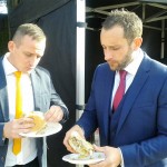 hog roast in Pembroke Dock using one of their wonderful free range, rare breed pigs. The evening was a charity event for one of their former members, a live band, DJ and a raffle all kept the 150 guests entertained, whilst the smell of the hog roast in Pembroke Dock from Spitting Pig’s gazebo kept everybody eager for the 8pm serve time! Spitting Pig Wales however had a challenge, as the Welsh Coastal weather lived up to its reputation, strong gusty winds buffeted the gazebo, rain was coming in almost horizontal but this didn’t stop cooking of the slow roast pig!! A full 12 hours of cooking and the pig was ready, it was decided given the awful weather conditions to bring the hog roast machine in so the pig could be carved and served inside, allowing everyone to enjoy the soft floured rolls, that succulent & tender pulled pork, the homemade sage & onion stuffing and the golden crispy crackling, without them having to venture outside and brave the elements.